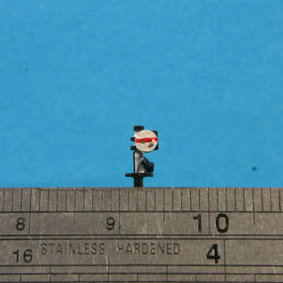 The point rodding for the layout is based around two parts. The first is some 0.4mm square Nickel-Silver wire which I buy from Model Signal Engineering, it comes in a pack of 10 x 12" lengths. The second part are the 'stools' which I persuaded Ivan from Southwark Bridge Models to etch, reduced from his 4mm scale range. Trust me, it took some persuading as they are VERY small! Below is a picture on how they come.